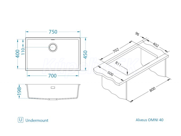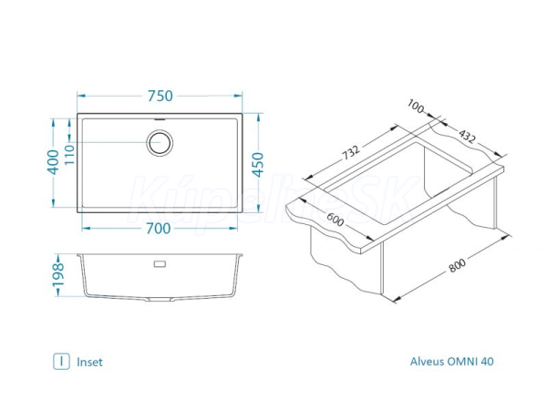 Alveus OMNI 40 G11 + jedn.sif. Vstavaný drez, univerzál. Prevedenie: granitový drez bez odkvapu Vonkajší rozmer: 700 x 400 mm Rozmer vaničky: 750 x 450 x 198 mm Sitkový ventil 3 1/2, sifón pre úsporu miesta s odbočkou na umývačku Úchyty a tesnenia na upevnenie drezu v balení Návod na inštaláciu v obrázkoch na obale Inštalácia vrchná I montáž alebo spodná U, veľkosť skrinky 800 mm Rozmery balenia (mm): 575 x 880 x 270 mm Váha netto: 13,7 kg Vestavěný dřez, univerzál. Provedení : granitový dřez bez odkapu Vnější rozměr: 700 x 400 mm Rozměr vaničky: 750 x 450 x 198 mm Sítkový ventil 3 1/2, sifon pro úsporu místa s odbočkou na myčku Úchyty a těsnění pro upevnění dřezu v balení Návod pro instalaci v obrázcích na obale Instalace vrchní I montáž nebo spodní U, velikost skříňky 800 mm Rozměry balení ( mm ): 575 x 880 x 270 mm Váha netto: 13,7 kg