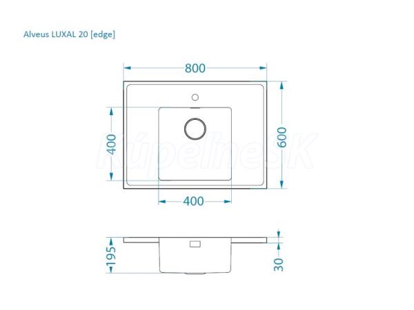 Alveus LUXAL 20, 800x600 RAISED ( Okrajový profil zvýšený ) Vstavaný drez, s odkvapovou plochou po oboch stranách, s lemom