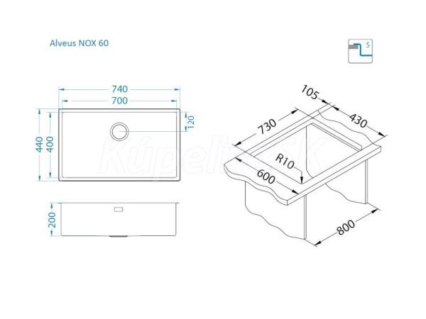 Alveus NOX 60 F/S/U BRS 740x440 MATERIÁL: BRS ROZMERY: 740x440x200 Šírka skrinky Montáž F/S 800mm Šírka skrinky Montáž U 900mm MATERIÁL: BRS ROZMĚRY: 740x440x200 Šířka skříňky Montáž F/S 800mm Šířka skříňky Montáž U 900mm