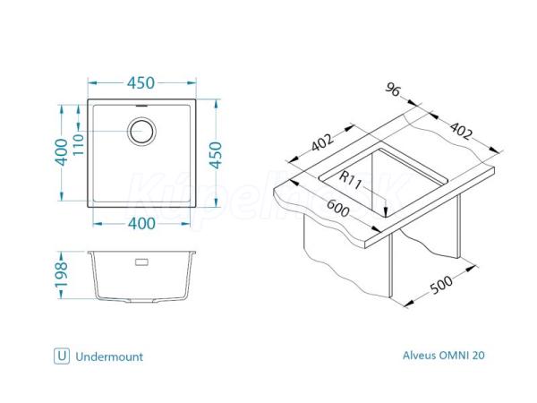 Alveus OMNI 20 G-90 BS vstavaný granit drez 450x450x198 mm Čiernyasifón 1150050
