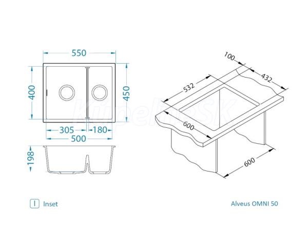 Alveus OMNI 50 G-81 vstavaný granit drez 550x450x198 mm, 2 vaničky, Betonasifón