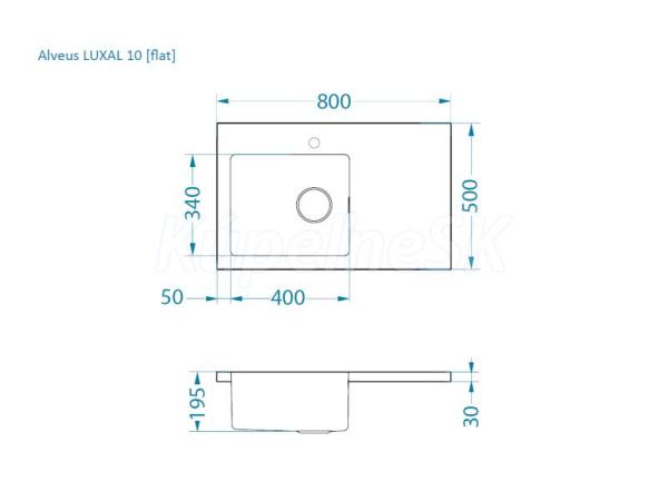 Alveus LUXAL 10 L, 800x500 FLAT ( Okrajový profil plochý ) Vstavaný drez, s odkvapovou plochou pravá, bez lemu