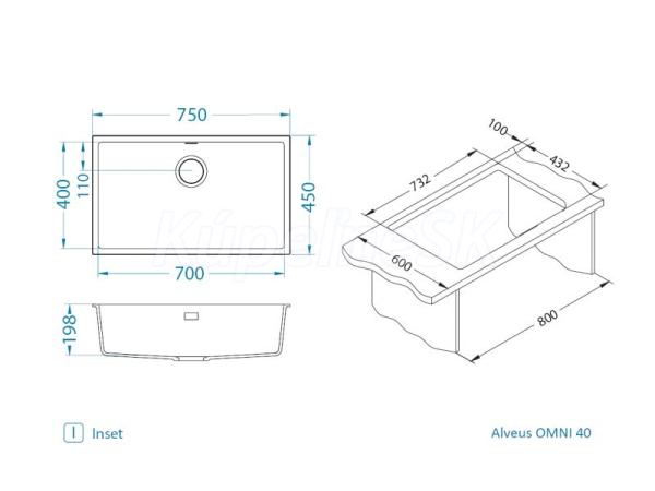Alveus OMNI 40 G22 + jedn.sif. Vstavaný drez, univerzál. Prevedenie: granitový drez bez odkvapu Vonkajší rozmer: 700 x 400 mm Rozmer vaničky: 750 x 450 x 198 mm Sitkový ventil 3 1/2, sifón pre úsporu miesta s odbočkou na umývačku Úchyty a tesnenia na upevnenie drezu v balení Návod na inštaláciu v obrázkoch na obale Inštalácia vrchná I montáž alebo spodná U, veľkosť skrinky 800 mm Rozmery balenia (mm): 575 x 880 x 270 mm Váha netto: 13,7 kg Vestavěný dřez, univerzál. Provedení : granitový dřez bez odkapu Vnější rozměr: 700 x 400 mm Rozměr vaničky: 750 x 450 x 198 mm Sítkový ventil 3 1/2, sifon pro úsporu místa s odbočkou na myčku Úchyty a těsnění pro upevnění dřezu v balení Návod pro instalaci v obrázcích na obale Instalace vrchní I montáž nebo spodní U, velikost skříňky 800 mm Rozměry balení ( mm ): 575 x 880 x 270 mm Váha netto: 13,7 kg