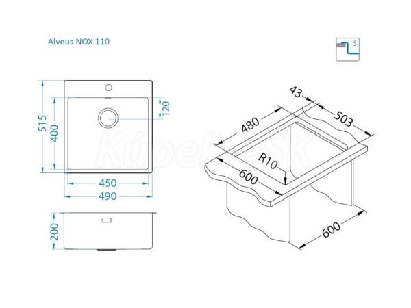 >> KUCHYNE - Kuchynský tovar >> Kuchynské drezy >> Nerezové drezy >> Alveus NOX 110 FS BRS vstavaný nerez drez 490x515x200 mm Kartáčovaný Nerez