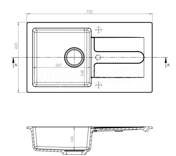 Prevedenie: granitový drez s odkvapom