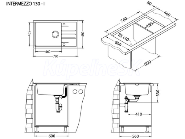 Alveus SET ALVEUS INTERMEZZO 130/81+BATERIE TONIA 81 Vestavěný dřez, univerzál. Provedení : granitový dřez Vnější rozměr: 780x480 mm Rozměr vaničky: 460x405x200 mm Manuální sifon 3 1/2 s přepadem, sifon pro úsporu místa s odbočkou na myčku. Úchyty a těsnění pro upevnění dřezu v balení S otvorem pro baterii Návod pro instalaci v obrázcích na obale Instalace do skříňky o šířce 600 mm pro montáž I 900 mm pro montáž U Váha: 17 kg Rozměry balení (mm): 865x560x265 Baterie Tonia Vysokotlaká baterie otočné ramínko rozměr:214 x 331 mm provedení: barevný nástřik