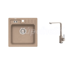 Alveus SET ALVEUS NIAGARA 20/55 + BATERIE AFRA 55 Vestavěný dřez, univerzál. Provedení : granitový dřez Vnější rozměr: 465 x 465 mm Rozměr vaničky: 380x320x180 mm sítkový ventil 3 1/2 s přepadem, sifon pro úsporu místa s odbočkou na myčku Úchyty a těsnění pro upevnění dřezu v balení S otvorem pro baterii Návod pro instalaci v obrázcích na obale Instalace do skříňky o šířce 450 mm Váha: 10,63 kg Rozměr balení (mm): 655x560x267 Baterie Afra Vysokotlaká baterie otočné ramínko rozměr:200 x 323 mm provedení: barevný nástřik