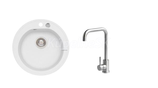 Alveus SET ALVEUS granit drez NIAGARA 10 okrúhly a batéria ANGEL Biela/Chróm SETA20117