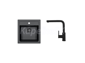 Alveus SET ALVEUS ATROX 20 / 91 BLACK ADDITON + BATERIE Zeos-P black addition Vstavaný drez, univerzál. Prevedenie: granitový drez Vonkajší rozmer: 470 x 500 mm Rozmer vaničky: 390 x 340 x 195 mm Sitkový ventil v čiernom prevedení 3 1/2 s prepadom, sifón pre úsporu miesta s odbočkou na umývačku Úchyty a tesnenia na upevnenie drezu v balení S otvorom pre batériu Predfrézované dva otvory Návod na inštaláciu v obrázkoch na obale Inštalácia do skrinky pri montáži: I- o šírke 450 mm, U- o šírke 600 mm Váha: 9,7 kg Rozmer balenia (mm): 598x584x263 Batéria Zeos - P Vysokotlaková batéria otočné ramienko rozmer:228x307 mm prevedenie: chróm čierna matná Váha: 1,15 Kg Vestavěný dřez, univerzál. Provedení : granitový dřez Vnější rozměr: 470 x 500 mm Rozměr vaničky: 390 x 340 x 195 mm Sítkový ventil v černém provedení 3 1/2 s přepadem, sifon pro úsporu místa s odbočkou na myčku Úchyty a těsnění pro upevnění dřezu v balení S otvorem pro baterii Předfrézované dva otvory Návod pro instalaci v obrázcích na obale Instalace do skříňky při montáži: I- o šířce 450 mm, U- o šířce 600 mm Váha: 9,7 kg Rozměr balení (mm): 598x584x263 Baterie Zeos - P Vysokotlaká baterie otočné ramínko rozměr:228x307 mm provedení:chrom černá matná Váha: 1,15 Kg