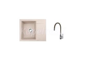 Alveus SET ALVEUS GEM 20/55 + BATERIE MINTAS 55 BRS Vestavěný dřez, univerzál. Provedení : granitový dřez Vnější rozměr: 590 x 500 mm Rozměr vaničky: 315 x 420 x 180 mm Sítkový ventil v chromovaném provedení 3 1/2 s přepadem, sifon pro úsporu místa s odbočkou na myčku Úchyty a těsnění pro upevnění dřezu v balení S předfrézovaným otvorem pro baterii Předfrézované celkem dva otvory Návod pro instalaci v obrázcích na obale Instalace do skříňky při montáži: I- o šířce 500 mm Váha: 12 kg Rozměr balení (mm): 500x500x180 mm Baterie Mintas beige BRS Vysokotlaká baterie otočné flexi ramínko rozměr:340 x 210 mm provedení: béžová, kartáčovaná nerez Váha: 2,5 Kg