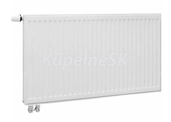 Radiátor typ Ventil-Kompakt (VK) je dodávaný so špeciálnou garnitúrou pre spodné pripojenie a ventilovou vložkou s prestaviteľnými hodnotami kv. Základný modelový rad radiátorov so 4-bodovým bočným pripojením a tvarovaným panelom s vertikálnymi kanálikmi. Súčasťou radiátora sú bočné kryty a vrchná mriežka. Od dĺžky 1700mm majú radiátory navarené 3 dvojice závesných držiakov. Povrchová úprava výrobkov KORAD pozostáva z troch základných krokov: 1.chemická predúprava - odmastenie, fosfátovanie. 2. 10 - 18 µm kataforeticky nanesená základná farba vypaľovaná v peci pri teplote 140°C po dobu 40 minút , 3. 60 - 80 µm elektrostaticky nanesená prášková farba vypaľovaná v peci pri teplote 180°C po dobu 20 minút.Panel radiátora je zvarený z dvoch výliskov, po obvode švovým zvarom. Panelové radiátory KORAD sú učené do vykurovaných priestorov s nízkou relatívnou vlhkosťou (30 - 60%) byty, kancelárie, školy, hotely, obchody, múzeá a pod. Panelové radiátory je najvhodnejšie situovať min. 140 mm pod okenný parapet do zvislej osi okna vo výške min. 70 mm od podlahy. Montáž radiátorov doporučujeme vykonávaťť v zabalenom stave, čím sa zabezpeeí maximálna ochrana radiátorov až do ukončenia všetkých stavebných prác. Na čistenie radiátora je možné použiť čistiace prostriedky určené na čistenie lakovaných povrchov. Nepoužívajte abrazívne čistiace prostriedky ani prostriedky obsahujúce chlór a kyseliny. ZÁRUKA 10 rokov.