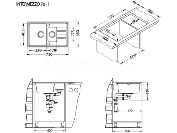 Alveus SET ALVEUS Intermezzo 70/55 + BATERIE RENO Vestavěný dřez, univerzál. Provedení : granitový dřez Vnější rozměr: 780x480 mm Rozměr vaničky: 330x405x200 mm Rozměr vaničky: 170x275x130 mm Manuální sifon 3 1/2 s přepadem, sifon pro úsporu místa s odbočkou na myčku. Úchyty a těsnění pro upevnění dřezu v balení S otvorem pro baterii Návod pro instalaci v obrázcích na obale Instalace do skříňky o šířce 600 mm pro montáž I 900 mm pro montáž U Váha: 18 kg Rozměry balení (mm): 865x560x265 Baterie RENO Stojánková baterie Otočné ramínko Rozměr: 207x286 mm Provední chrom