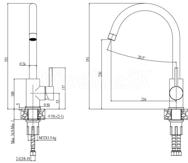 Prevedenie: granitový drez s odkvapom