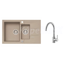 Alveus SET ALVEUS ROCK 70 /02 + BATERIE ELZA BRS Vestavěný dřez, univerzál. Provedení : granitový dřez s odkapem Vnější rozměr: 780 x 480 mm Rozměr vaničky: 320 x 400 x 180 mm 180 x 300 x 120 mm Exentrický sítkový ventil 3 1/2 s přepadem, sifon pro úsporu místa s odbočkou na myčku Úchyty a těsnění pro upevnění dřezu v balení S otvorem pro baterii Návod pro instalaci v obrázcích na obale Instalace do skříňky o šířce 600 mm Váha: 17,45 kg Rozměr balení (mm): 865x560x220 Elza Vysokotlaká baterie otočné ramínko rozměr:216 x 351 mm provedení: chrom/barevný nástřik