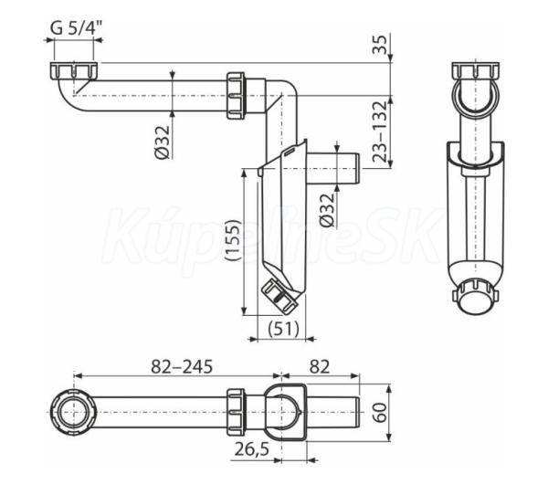 ALCA Sifón umývadlový nábytkový DN32 s prevlečnou maticou 5/4"
