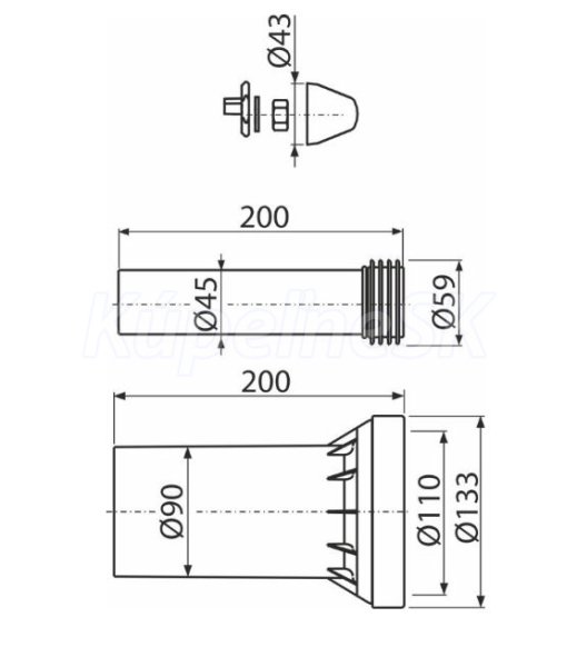 ALCA M900K-DN90 pripojovacia sada k závesnému WC – DN90, 200 mm, PE, chróm