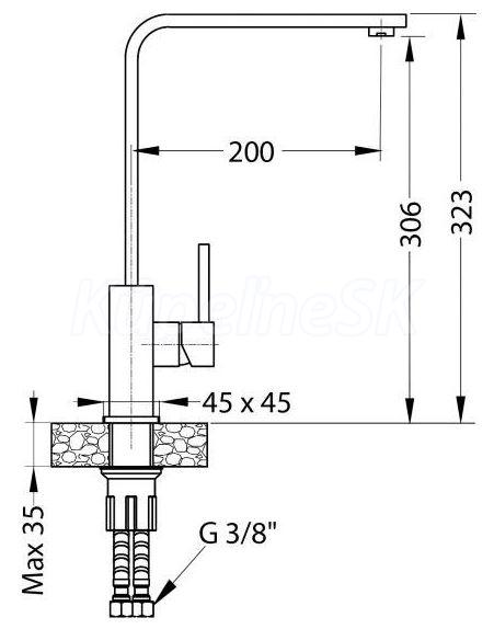 Instalace do skříňky o šířce 500 mm, spodná montáž 800 mm