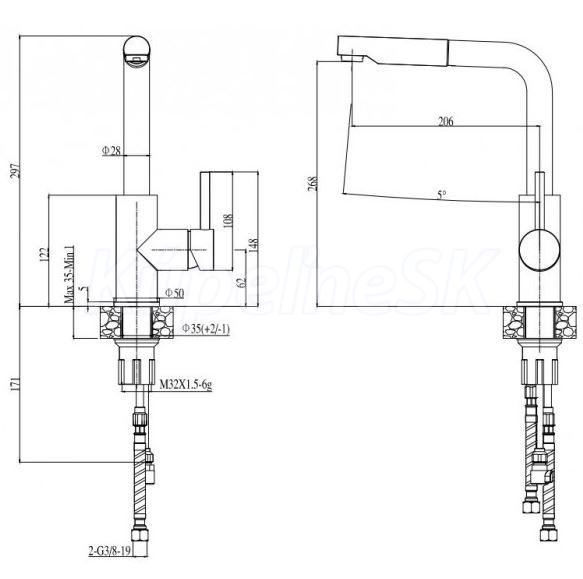 Instalace do skříňky o šířce 800 mm, spodná montáž 900 mm