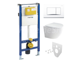 Mereo WC set - Rimless WC oblé, modul pre sadrokartón, biele hranaté tlačidlo MM02NSETRS22