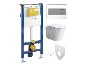 Mereo WC set - Rimless WC hranaté, modul pre sadrokartón, hranaté tlačidlo biela/chróm MM0