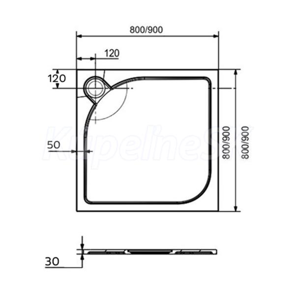 Štvorcová sprchová vanička s dlhou životnosťou, liaty mramor, vrátanie sifónu, bez nožičiek, gelcoat.