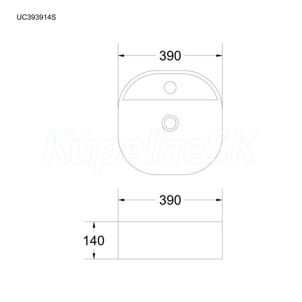 Mereo Umývadlo na dosku bez prepadu, 390x390x140 mm, keramické UC393914S