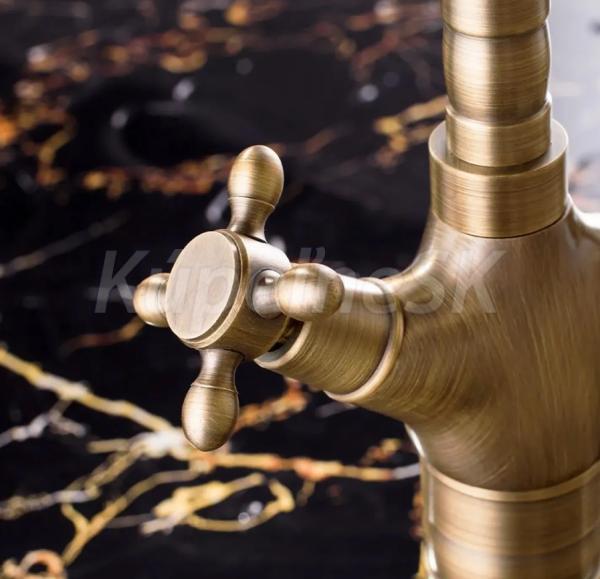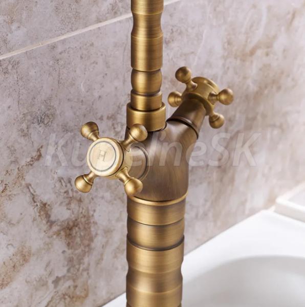 Predstavujeme vám mimoriadne krásne a jedinečné batérie so otáčavou výlevkou. Záverečný štýl v retro vzhľade s mosadznými vizuálnymi prvkami podčiarkne výnimočnosť každej kúpeľne alebo kuchyne. Batéria je prispôsobená na montáž na pracovnú dosku alebo drez. Hlava použitá v tejto batérii je mimoriadne odolná vďaka keramickému materiálu. Batéria bola vyrobená z mosadze, pokrytej pevným vrstveným zlatým náterom, ktorý je odolný a ľahko sa udržiava.