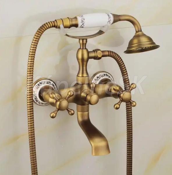 REA Rustico nástenná vaňová batéria s ručnou sprchou Antické Zlato REA-B0702