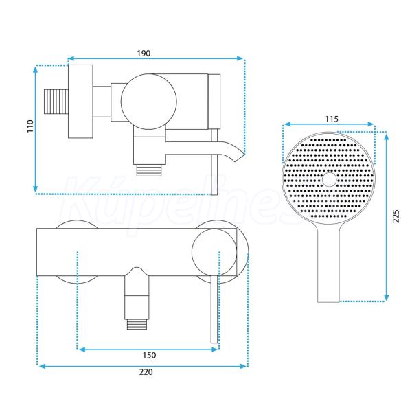 >>  Batérie vodovodné  >>  Vaňové batérie  >>  REA Clif nástenná vaňová batéria s ručnou sprchou Čierna matná REA-B4240