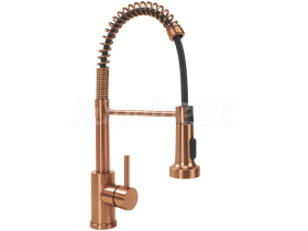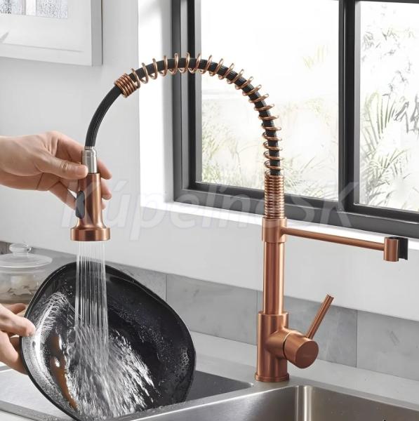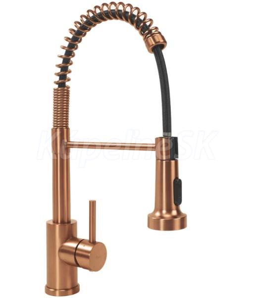 Základom každej funkčnej kuchyne je vhodná kuchynská batéria. Inovatívny kovový teliesko, z ktorého je tento výrobok vyrobený, je zárukou odolnosti a stability batérie. Odolná povrchová úprava zabezpečuje odolnosť voči nečistotám a medená farba s výnimočným vzhľadom dokonale zapadne do vášho kuchynského priestoru. Dlhodobú spoľahlivosť zabezpečuje keramická hlavica. Ohybný výtok umožňuje nasmerovať prúd vody kamkoľvek. Koniec výtoku je vybavený prepínačom, ktorý umožňuje výber medzi rozptýleným a sústredeným prúdom. Výnimočná odolnosť vďaka technológii PVD Povrch v odtieni brúseného medi bol nanesený s využitím modernej technológie PVD. Tento inovatívny proces farbenia kovových povrchov spôsobuje, že batéria je až 15-krát odolnejšia voči oškrabaniu, korózii a odtlačkom prstov ako modely upravené tradičnými spôsobmi.