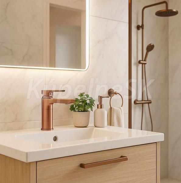 Predstavujeme vám krásnu, mimoriadne funkčnú a modernú batériu. Ide o produkt, ktorý vynikajúco doplní váš priestor v kúpeľni, zachovávajúc bezchybný vzhľad a estetiku interiéru. Batéria je určená na montáž na umývadlo. Bola vyhotovená z mosadze, pokrytej povrchovou úpravou v odtieni brúseného medi v technológii PVD. Vďaka špeciálnej fáze výroby je odolná a ľahko sa udržiava v čistote. Odolná povrchová úprava aplikovaná technológiou PVD nielenže zabezpečuje odolnosť proti oderu a korózii, ale aj garantuje estetický vzhľad na dlhý čas. Zabudovaný perlátor umožňuje znížiť spotrebu vody, a keramická hlavica zabezpečuje plynulú reguláciu prúdu a teploty.