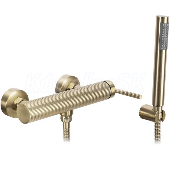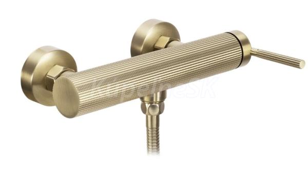 Sprchová batéria v zlatom brúsenom prevedení je ideálnym spojením luxusného dizajnu a funkčnosti. Originálny, ryhovaný teliesko jej dodáva moderný, a zároveň elegantný vzhľad. Vyrobená z vysoko kvalitnej mosadze, zabezpečuje dlhú životnosť.
