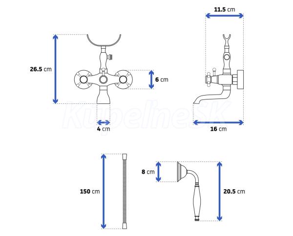REA Retro nástenná vaňová batéria s ručnou sprchou stará Čierna REA-B0224