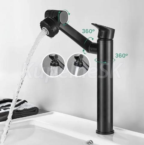 >>  Batérie vodovodné  >>  Umývadlové batérie  >>  REA Paco vysoká stojánková umývadlová batéria bez výpuste,pohyblivé rameno, Čierna REA-B05