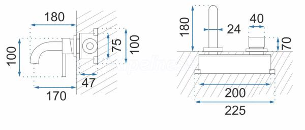 Funkčná a moderná podomietková batéria. Je to produkt, ktorý vynikajúco vyplní váš priestor v kúpeľni pri zachovaní vynikajúcej estetiky interiéru. Batéria je vhodná na stenu. Bola vyrobená z bronzu pokrytého povrchovou úpravou.