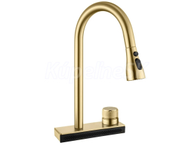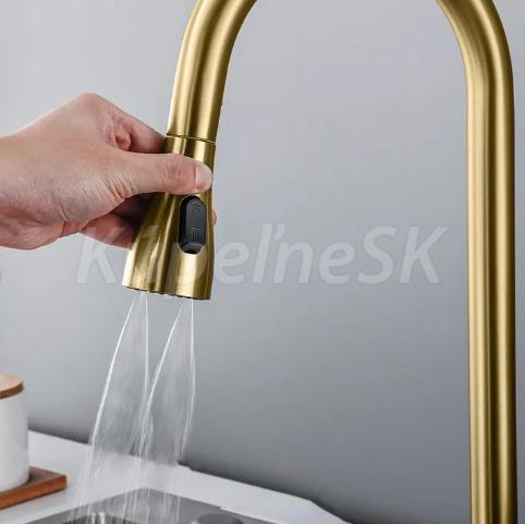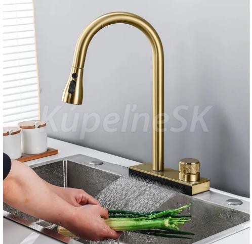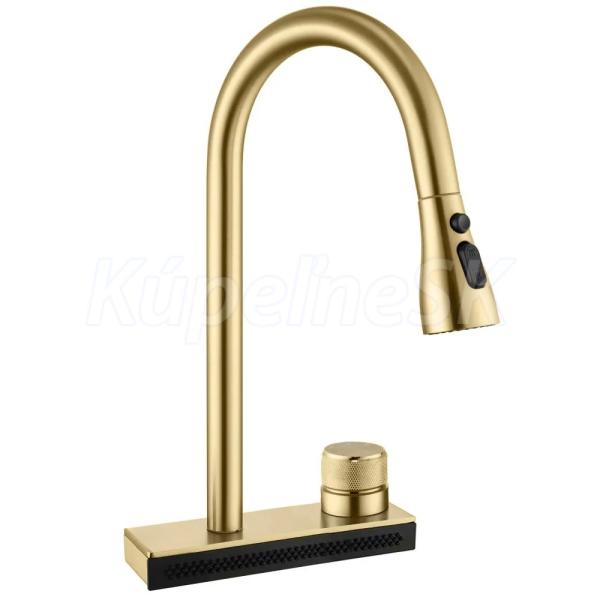 REA Conor kuchynská-drezová stojánková batéria,vyťahovacia sprška,vodopád,brúsené Zlato RE