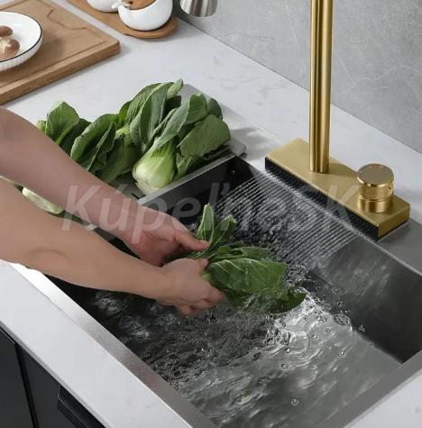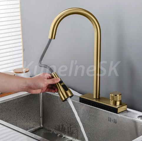 Okrem toho má batéria zabudovaný prúd vody typu vodopád, čo zvyšuje jej funkčnosť a umožňuje pohodlné umývanie zeleniny a ovocia, ako aj preplachovanie riadu.