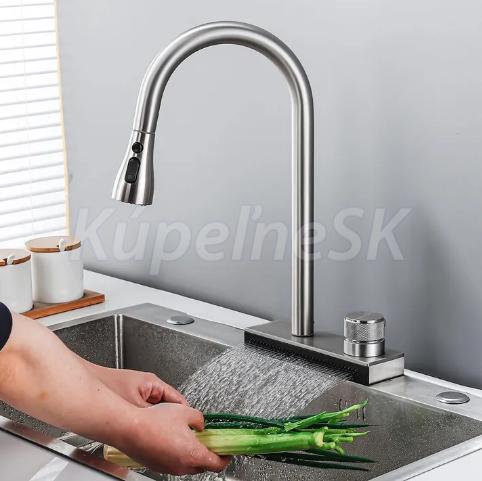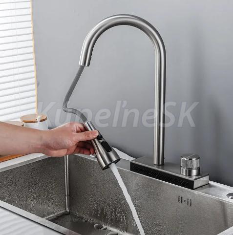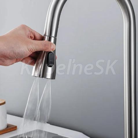>>  Batérie vodovodné  >>  Drezové-Kuchynské batérie  >>  REA Conor kuchynská-drezová stojánková batéria,vyťahovacia sprška,vodopád,brúsený Nikel RE