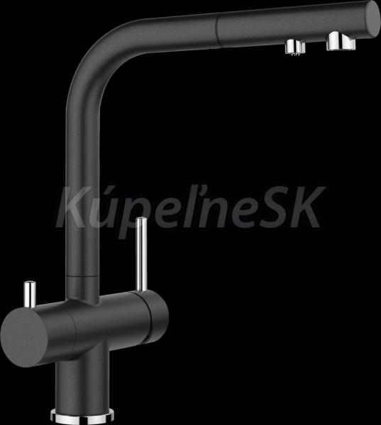 komfortná 2-v-1-batéria s ovládaním vpravo pre teplú a studenú vodu a s ovládaním vľavo pre filtrovanú vodu