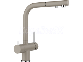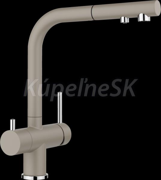 komfortná 2-v-1-batéria s ovládaním vpravo pre teplú a studenú vodu a s ovládaním vľavo pre filtrovanú vodu