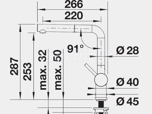 o 140° otáčateľný odtok vody
