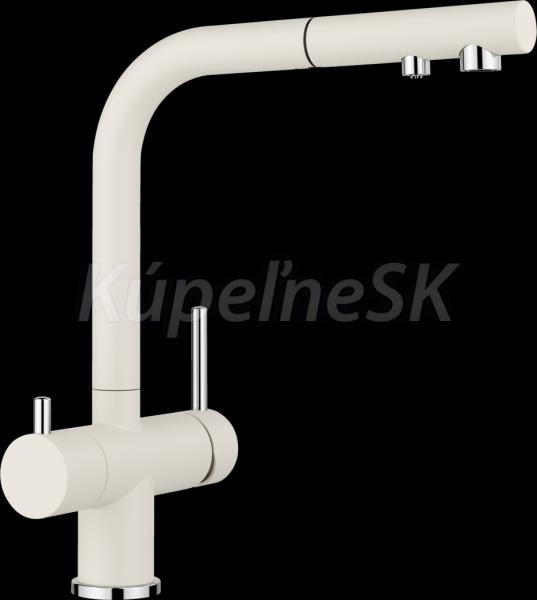 komfortná 2-v-1-batéria s ovládaním vpravo pre teplú a studenú vodu a s ovládaním vľavo pre filtrovanú vodu