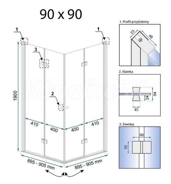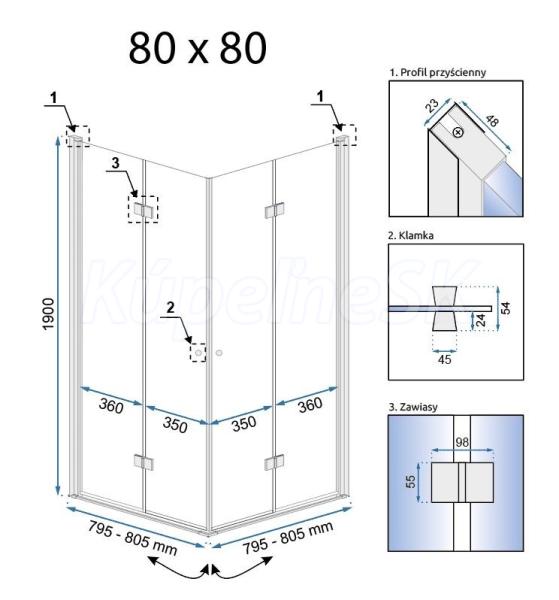 REA Fold N2 rohový sprchový kút 80x80x195 cm,rohový vstup,zalamovacie dvere,Číre/Chróm REA