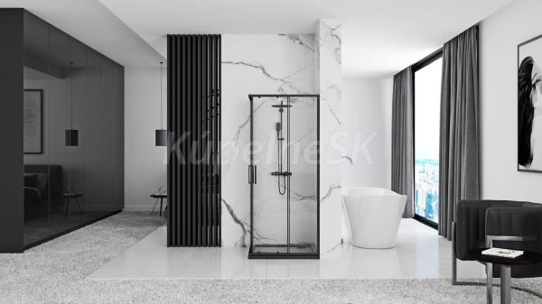 REA Punto Black rohový sprchový kút 80x100x190 cm,rohový vstup,posuvné dvere,sklo Číre
