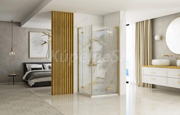 REA Hugo rohový sprchový kút 100x100x200 cm,rohový vstup,krídlové dvere,Číre/brúsené Zlato
