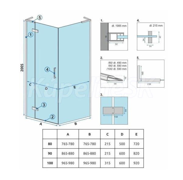 >>  Sprchové kúty a žľaby  >>  Rohové sprchové kúty  >>  Bočné steny  >>  REA Hugo bočná stena k sprchovému kútu 90x200 cm sklo Číre rám brúsené Zlato REA-K6613