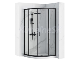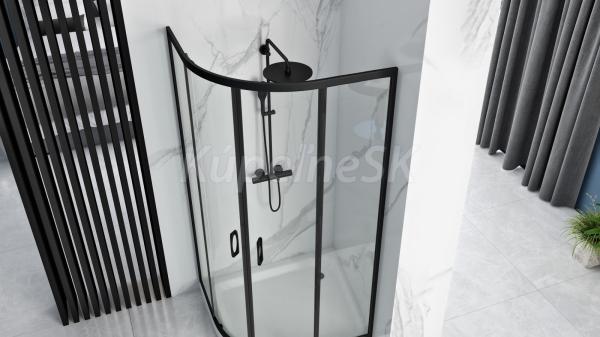 REA Look Black štvrťkruhový sprchový kút 90x90x190 cm, posuvné dvere, sklo Číre