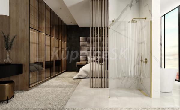 REA Aero Walk-In sprchová zástena k stene 120x195 cm sklo Číre rám brúsené Zlato+vzpera