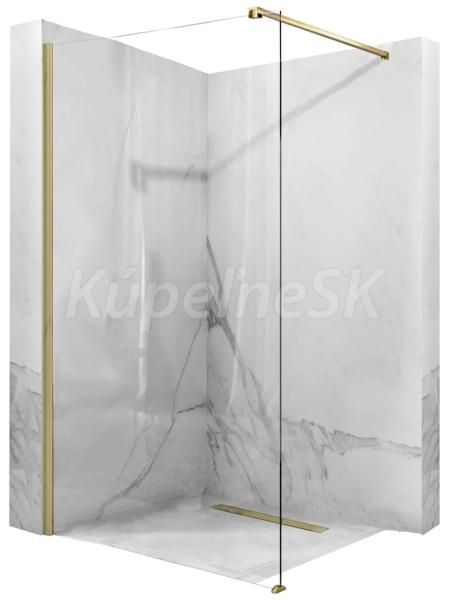 REA Aero Walk-In sprchová zástena k stene 110x195 cm sklo Číre rám brúsené Zlato+vzpera