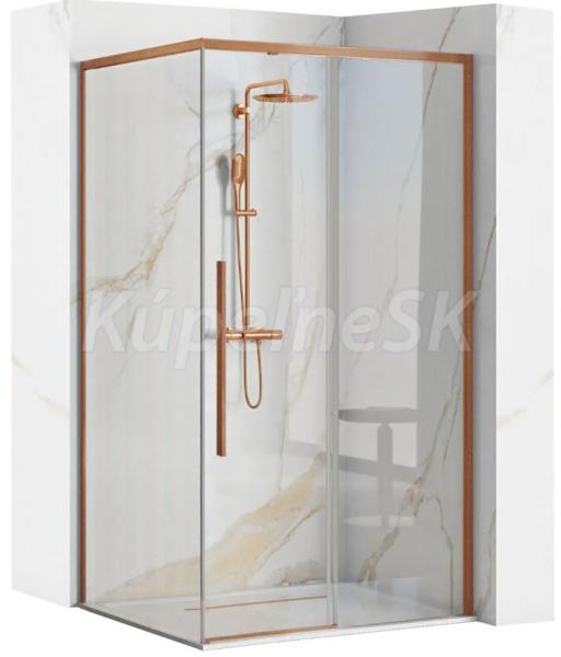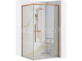 REA Solar rohový sprchový kút 90x90x195 cm, posuvné dvere, Číre/brúsená Meď